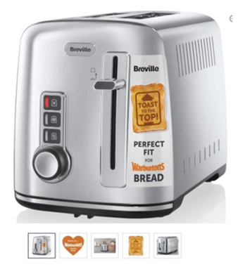 Sized to perfection – We’ve waited a long time, but our prayers have finally been answered. At long last we’ve found a toaster that actually browns the entire surface area of bread – not just the middle – all the way to the top. The Breville Warburtons Toaster will fit any sized Warburtons loaf with ease, even the extra thick slices thanks to its variable width and length slots.